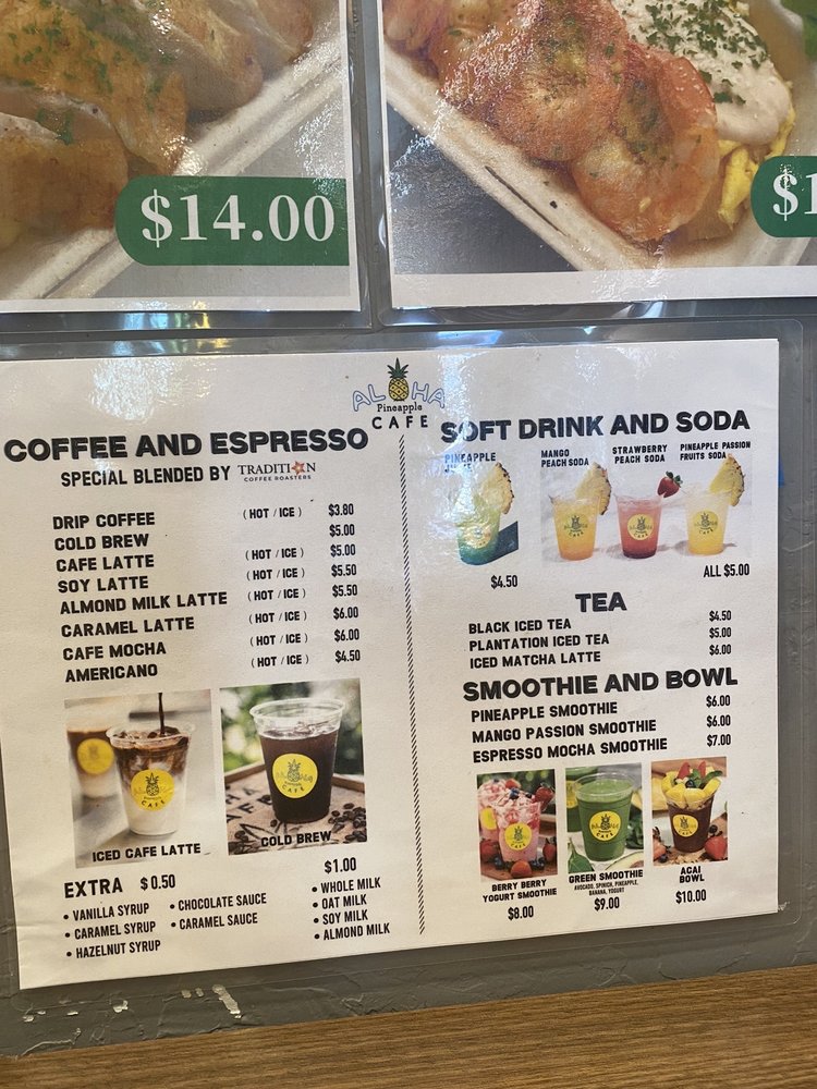 Aloha Cafe Pineapple is a hidden gem offering a diverse menu of delicious food and beverages in a peaceful cafe setting on 3212 Monsarrat Ave, Honolulu, HI. This trendy cafe is praised for its Mochiko chicken, garlic shrimp, iced lattes, and pineapple passion fruit soda. Customers rave about the friendly service and the abundance of flavor in their dishes. The cafe's plantation tea and hibiscus mint tea are addicting and refreshing options. The Monsarrat Plate is a hearty breakfast option at a better price than major chain coffee shops. With both indoor and outdoor seating areas decorated with aloha spirit and pineapples, Aloha Cafe Pineapple provides a welcoming atmosphere for all. Don't miss out on their grilled chicken plate, a must-try according to loyal customers.